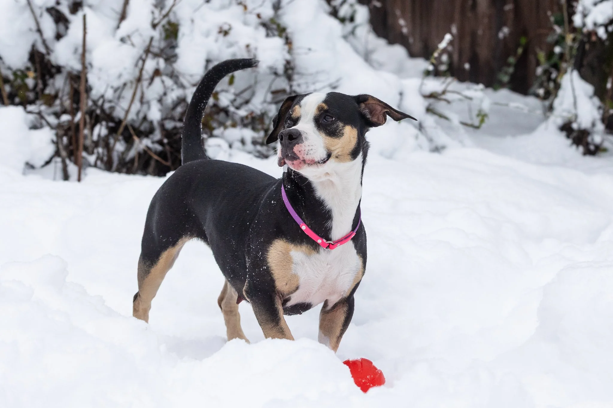 Joy came to us in December 2025 and immediately settled in with our pack. She was adopted and unfortunately returned due to anxiety and struggling to adapt to her new home. After getting a few more applications that didn’t seem like a good fit, we decided Joy would do best staying with us and our pack. This girl was so good with the other foster we had simultaneously (Pearl) that we know she’ll be great with future foster dogs!